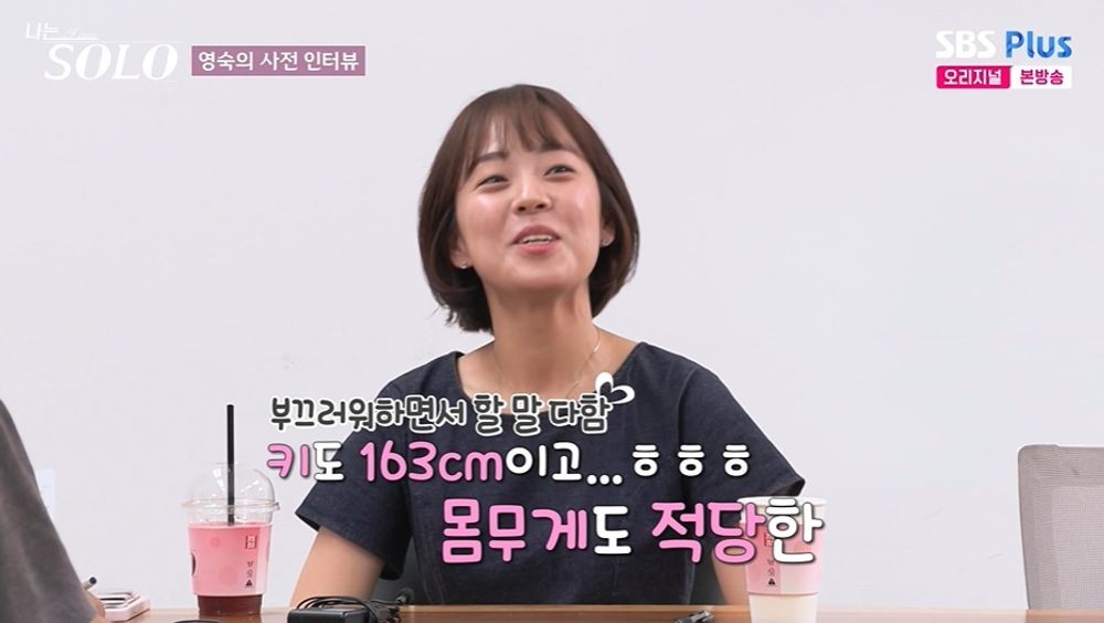 영숙은 자신의 매력에 관해 “평소 하이톤이라 잘 웃고 말이 잘 통한다”라며 “외적인 건 키도, 몸무게도 적당하다. 대박은 아니지만 (쪽박도 아니다). 그리고 저 웃기다”라고 자랑했다. 피디가 “딱따구리 같다”고 하자 영숙은 크게 당황하다가도 인정했다.
