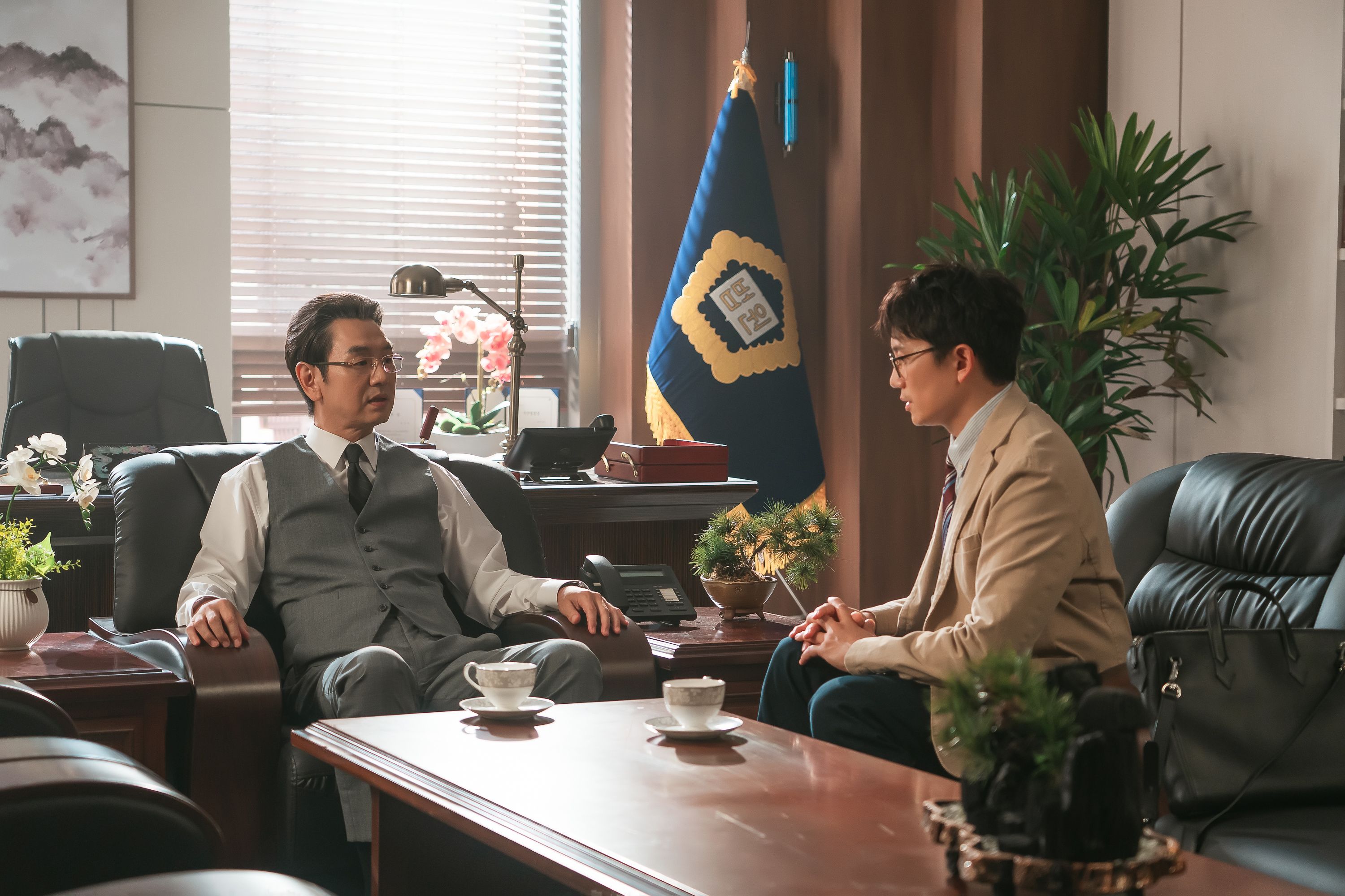 강신진은 황남용을 대법원장으로 세울 계획이었지만 어떤 이유에선지 황남용 아들의 채용 비리 문서를 이한영에게 건네 의문을 자아냈다. 새로운 대법원장 인선을 두고 이한영과 강신진의 동상이몽이 충돌하는 가운데 이날 공개된 스틸에서는 두 사람이 각자의 목적이 담긴 만남을 갖고 있어 시청자들의 관심을 집중시키고 있다.