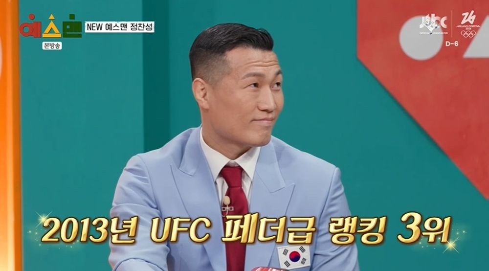 새로운 ‘예스맨’은 “김영광이 이 구역 싸움 짱이냐. 맞아봐야 정신 차린다”고 했다고. 이에 김영광은 “전 맞으면 가만 안 있는다”라고 발끈했다. 신참은 ‘코리안 좀비’ 정찬성이었고, 모두 공손하게 인사했다. 정찬성은 “다른 말 필요 없고, 1등 하러 왔다”라고 선언했다.