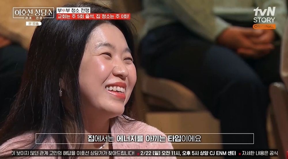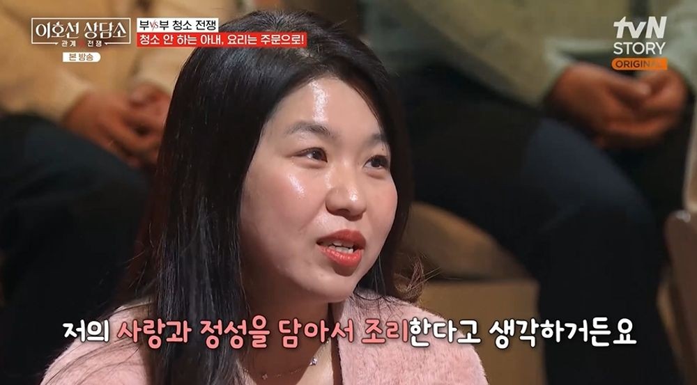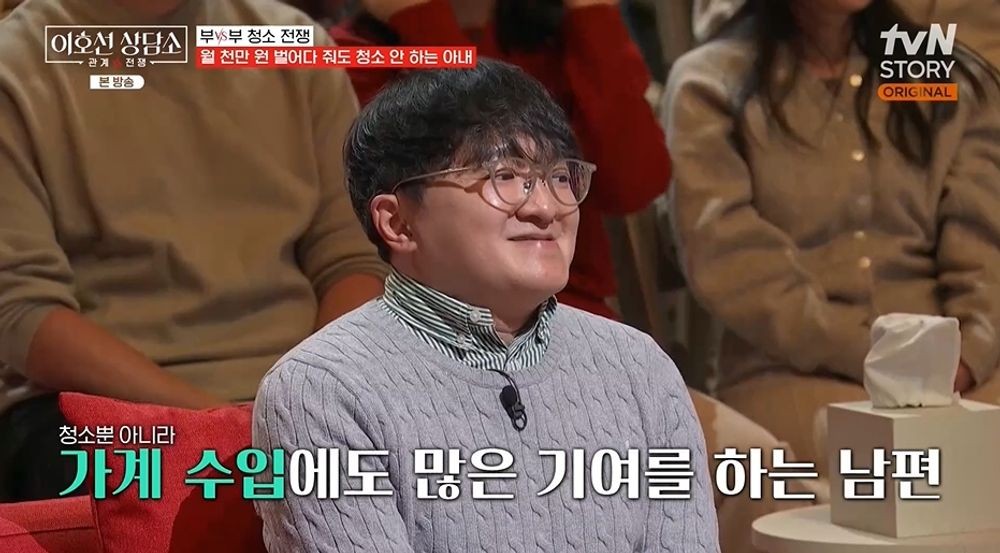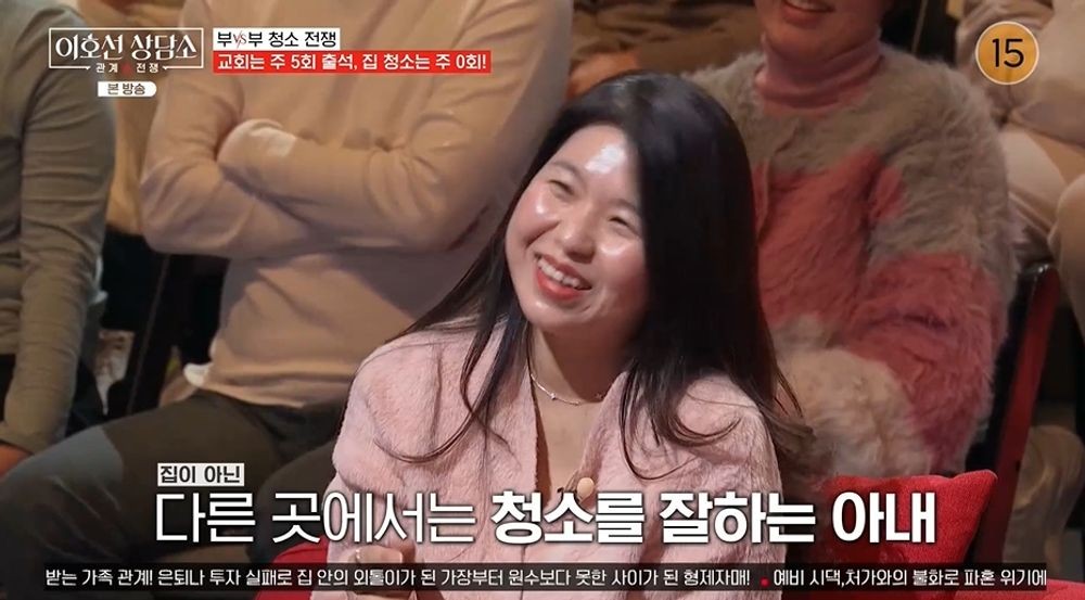 이호선은 등장부터 시종일관 웃는 아내에게 청소를 왜 안 하는지 물었다. 아내가 “청소를 별로 좋아하지 않는다”라고 하자 이호선은 “저도 상담 별로 좋아하지 않는다”고 응수했다. 아내는 “(청소할 때) 기쁨이 없어서 몰아서 하는 편”이라고 했다.