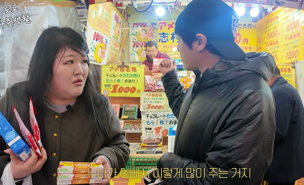이날 이국주는 일본인 남사친 후지와라 토모키와 만나 도쿄 우에노에 위치한 가성비 초콜릿 가게를 방문했다. 해당 가게는 1,000엔을 지급하면 사장님이 직접 초콜릿을 골라 담아주셨는데 이국주는 총 8개의 초콜릿을 받았다. 생각보다 많은 양에 이국주는 “만원에 이렇게 많은 초콜릿을 줬다. 왜 이렇게 싼 거냐”라고 놀라워했고, 후지와라 토모키는 “누나가 예뻐서 이렇게 많이 주는 거다”라고 답해 달달한 분위기를 자아냈다.
