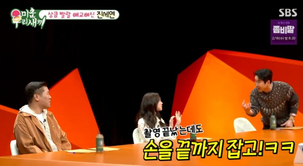 진세연은 또 ‘미우새’ 아들인 최진혁을 자신의 첫 키스 상대로 꼽고는 “내가 19살에서 20살로 넘어가던 시절에 최진혁과 드라마를 찍었다. 19살 대본에는 ‘뽀뽀’라고 적혀 있었는데 20살이 되자 ‘전보다 강하게’라고 적혀 있더라. 작가님이 봉인 해제 느낌으로 써주신 것”이라고 털어놨다.