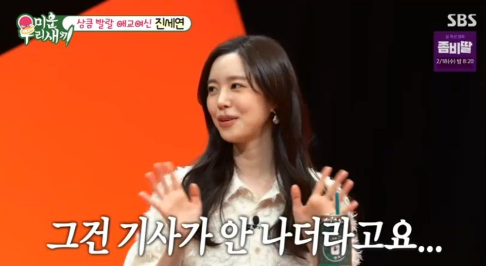이날 진세연은 ‘미우새’ 출연자들과의 특별한 인연도 전했다. 과거 서장훈이 진행하는 ‘아는 형님’에 게스트로 나섰던 그는 “서장훈의 손을 잡고 퇴장하는 설정이었는데 촬영이 끝난 뒤에도 서장훈이 내 손을 잡은 채로 ‘오늘 고생했다’고 해주셨다. 아주 다정한 목소리라 좋은 분이라는 생각을 했다”고 당시를 회상했다.