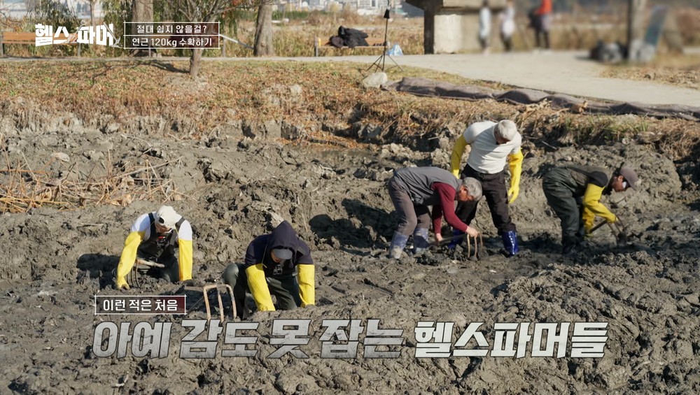 15일 저녁 tvN ‘헬스파머’ 마지막회에서는 헬스파머 5인방과 신입 농부 이준이 진흙 밭에서 연근 수확에 나서는 장면이 그려졌다. 이날 수확 목표는 1인당 연근 20㎏. 그간 몇 톤씩 농산물을 수확해온 파머들은 “금방 한다”며 조기 퇴근을 기대했지만, 진흙 밭에 발을 디딘 순간 표정이 바뀌었다. 서 있기조차 버거운 진흙 속에서 연근을 찾아 캐내는 작업은 고난도 기술과 체력을 동시에 요구했기 때문.
