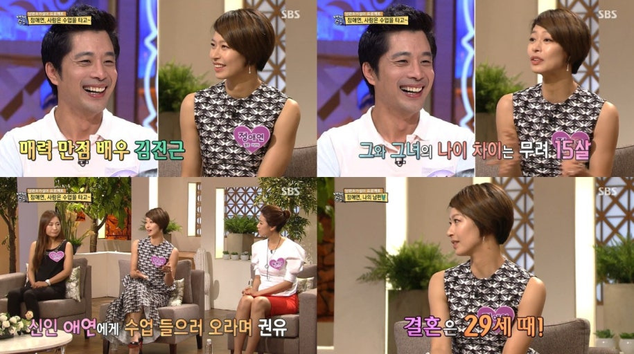 정애연과 김진근은 2001년 단막극에 함께 출연하며 인연을 맺은 후 8년간의 교제 끝에 15세의 나이 차를 극복하고 지난 2009년 백년가약을 맺었습니다.