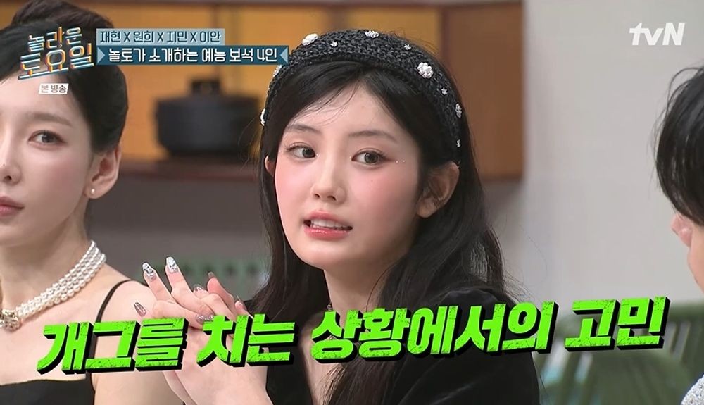아일릿 원희는 앞서 신동엽이 ‘놀토’에서 춤을 잘못 따라 한 걸 봤다고 말하며 속성 강의를 해주었다. 이어 원희는 문세윤을 지목하며 “방송 중에 어쩔 수 없는 하품이나 혈당 스파이크가 올 때 자연스럽게 넘어가는 방법을 배우고 싶다”라고 밝혔다. 원희는 “개그를 칠 때 웃긴 멘트를 했는데 실패했을 때, 진지한 얘기인 척 어떻게 넘어가는지 (알고 싶다)”라고 덧붙이기도.
