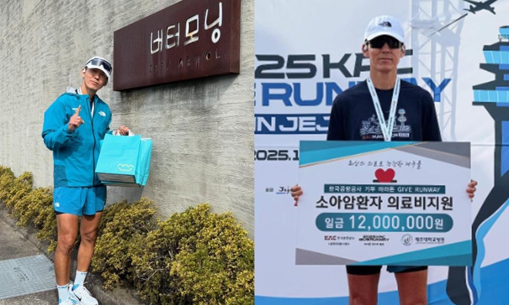 공개된 사진 속 션은 제주도의 한 유명 빵집 앞에서 빵을 한가득 사 들고 환하게 웃는 모습이다. 이어진 사진에서는 기부런을 마치고 기념사진을 찍는 모습도 담겼다. 그는 9.5km 구간을 49분 56초 만에 완주하며 소아암 환아들의 의료비 지원을 위해 1,200만 원을 기부했다.