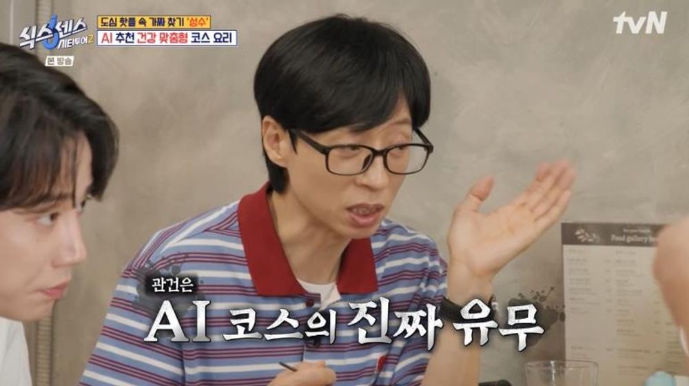 음식을 맛본 후 유재석은 “식당 운영은 진짜 같다. 그런데 AI 코스가 진짜인지 모르겠다”라며 고민했다. 이에 지석진은 “사장님 말씀이 진정성이 있었다. 외진 곳이라 장사가 안되니까 마케팅 차원에서 이렇게 (AI 코스로) 해둔거다”라고 설득에 나섰고, 미미는 “왠지 진짜 같다”라며 동조했다.